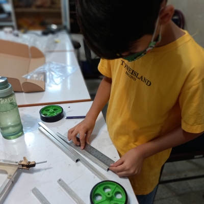 پروفیل آلومینیوم، قطعات برش خورده چوبی، شفت فلزی، موتور گیربکس، سیم، کلید، کانکتور، جاباتری، چرخ و قطعات کوچک مکانیکی