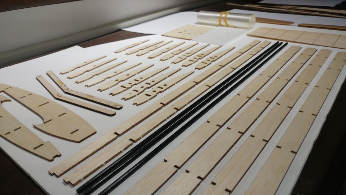 قطعات برش خورده چوبی و فومی، وزنه‌ی تعادل، کش، لوله‌ی کربنی، کاور